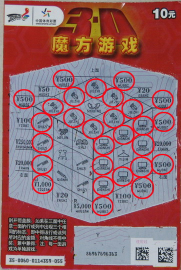 众所周知,魔方的玩法是将打乱的立方体通过转动尽快恢复成六面成单一颜色。近日上市的“顶呱刮”——“3D魔方游戏”带您重温一把童年和小伙伴一起比拼魔方的快乐。该票种每张面值为10元,最高奖金25万元,借助魔方这一有趣的形式,游戏区分为“上、左、右”三面,每一面中都有“3列+3行”即6次中奖机会,如此算来魔方的三面事实上为彩民提供了多达18次的中奖机会。