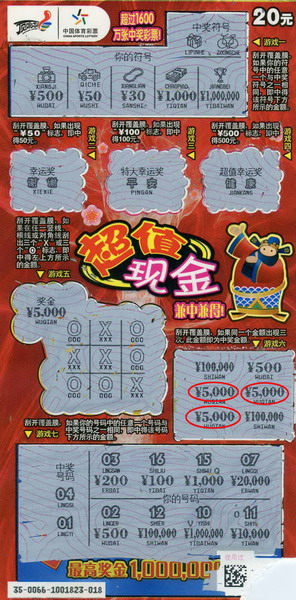 超值现金的隆重登场,在徐州即开彩市好像刮起了一阵“超值旋风”,“到站点刮超值现金”已成为时下的流行语,站点里随处可见彩民朋友争先购买即开新票超值现金的场景。徐州彩民近期好运不断,26日再次得到幸运女神青睐,喜中超值现金5000元!