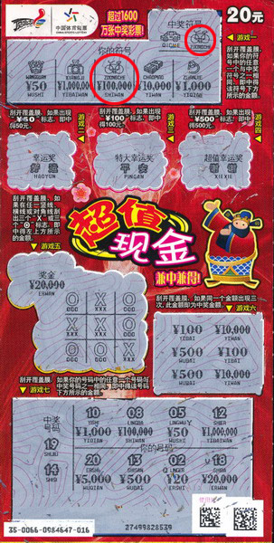 章先生(化名)是地道的苏州人,5月1日这天他与朋友相约来到太湖西山岛旅游,而就在他们游玩准备返家的途中,朋友几个感觉有些口渴,就一起去杂货店里买饮料。在杂货店里旁边,一条醒目的横幅引起了章先生的注意,上面写着“超值现金,超越百万”。章先生径直走进了这家体育彩票销售站点,选择了5张“超值现金”,第5张彩票的“游戏一”里,自行车的图案给他一个大大惊喜,10万元大奖就这样产生了。