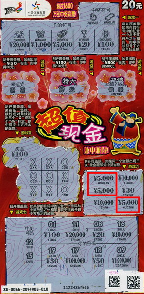 5月28日下午,一位姓毛的中年人揣着一张“超值现金”现身张家港体彩中心兑奖大厅,经过工作人员确认,该张彩票中奖5000元。据了解,毛先生一直热衷于数字型彩票,是位技术型彩民。当天上午,毛先生在一家体彩投注站研究“排列3”,对于小盘玩法“排列3”,毛先生可是位专家,每期都会有所斩获,近几期就已收获了不少奖金。正因如此,毛先生的购彩信心一直是有增无减,不断被数字激发出的灵感让毛先生收获了很多自信和快乐。在怀有一番成就感之余,毛先生决定再尝试一下即开型彩票,当天,在让销售员打完当期的“排列3”号码后,毛先生毫不犹豫地挑了一张20元的“超值现金”,谁料,幸运就这样眷顾毛先生了,初涉顶呱刮彩票,就让他刮出了个5000元,还加送一台电脑,毛先生真可谓是中奖高手。