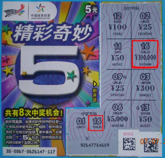 孙先生是位普通的外来打工者,每天下班的时候都会在 05699 站点买上点体育彩票。这次回家乡住了两个半月愣是没有买过一次体育彩票,一回到吴江,孙先生就熬不住了,趁在中午吃饭时间就走进体彩站点花 10 元买了 2 张“精彩奇妙 5 ”。当孙先生刮开第一张彩票的中奖标识区域时,看到上面的号码“ 16 ”同下面的中奖号码“ 16 ”相同,一阵小小的紧张,再刮开下面的中奖金额时,孙先生傻了眼,竟然是 10 万元。