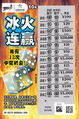 该票种每张10元,共有12次中奖机会,最高奖达25万。刮开覆盖膜,如果在任意一场游戏中你的数字大于对手的数字,即中得该游戏右方所示的金额。兼中兼得。目前该款游戏已陆续在我省开始发售,喜欢刮彩的朋友可前往各体彩站点尝鲜。(郑俊春)