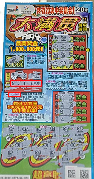 22日上午,中出该大奖的站点业主陪着张先生一起来领奖,站点业主透露说,老张可以称得上是资深彩民了,他的最爱就是“排列3”,分析走势、研究冷热号全都不在话下。“我多次在‘排列3’上有所收获,几千、上万都中过。”老张说,自己以前一直不太在意顶呱刮,认为这种彩票属于运气型的,没有什么技术含量。21日这天,老张照常来到彩票店研究“排列3”,就在与彩友分析的时候,一张鲜艳的海报吸引到了他的注意。“我当时仔细看了下,原来是顶呱刮新品‘大满贯’,就尝试买了几张,当时完全是因为这个票面把我吸引了。”老张这一关注不要紧,10万大奖飞进了他的腰包。领取大奖的同时,老张还获得了100元即开型彩票。