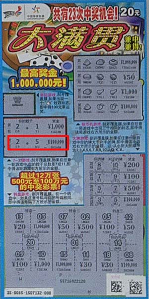 在兑奖大厅,幸运彩民许先生(化名)很随和,对于记者的提问侃侃而谈。原来中奖当晚,许先生正好有事,等忙完了手里的事赶到站点时,发现销售员正要新拆一本“大满贯”,于是就要了第一张票刮刮试试手气,结果就是这本票的“000”号暗藏十万大奖,当“7-11游戏区”出现“2+5”的时候,许先生当时真的有点发懵,看了又看才敢相信,自己真的跟十万大奖来了个亲密接触!