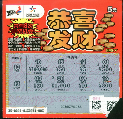 新票“恭喜发财”和“玉兔送财”刚刚在扬州销售。“恭喜发财”是顶呱刮最新5元票种,大红的票面色调充满了节日的喜庆感,该票共有8次中奖机会,最高奖金为10万元。只要刮开“福”字覆盖膜,如果你的号码中的任意一个号码与中奖号码之一相同,即中得该号码下方所示的金额。新票种不仅带给了彩民满满的新春祝福,而且让彩民们又一次体验了体彩“顶呱刮”的乐趣!