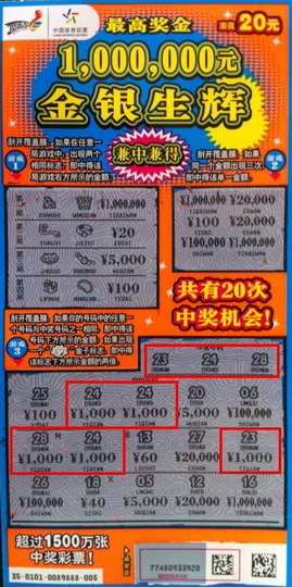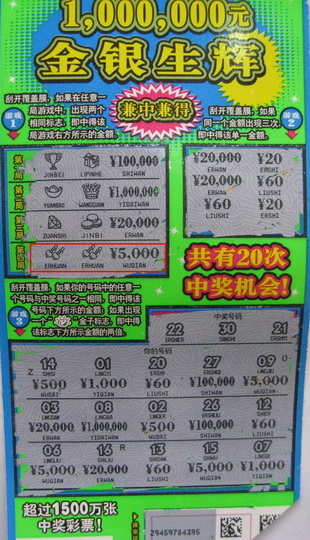 比起先生,另一位来自南京六合的彩民先生则淡定很多。他是个老彩民,经常购买大乐透和排列三玩法,而且收获也不少。听说顶呱刮“百万家族”又添新成员,他就两种颜色各买了一张试试手气。在荧光绿色的彩票上,游戏一就中了5000元。