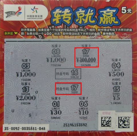 “转就赢”面值5元,最高奖金10万元。票面以橘红色为主色,以“大转盘”为主元素,两个转盘号码稳伫中心,8个玩家号码萦绕四周,寓意着无论转到哪里,都可能有超值好礼等着您。李先生的中奖经历真是让人羡慕,十元换十万,翻了1万倍!出现在兑奖大厅的李先生十分从容,一坐下来不等工作人员指导,就先把名字和电话号码写在了中奖彩票的背面,然后把身份证掏出来递了过去。工作人员一看,哟,这是老彩民,而且还是老中奖彩民的风范啊。细细询问之下,李先生倒也很爽快,表示自己已经是第二次来兑奖大厅了,上次中奖是去年五月初,也是即开型“顶呱刮”中的大奖,3元“红樱桃”中了3万!这样的好运气让工作人员也不禁感叹,500万大奖是不常有,但如果一年能遇上一次这种一翻倍就上万的好事情也不错啊!李先生也在期许,去年是中了3万,今年是中了10万,明年是不是能冲刺一下百万大奖呢?