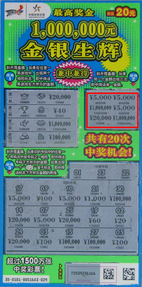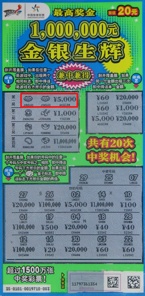 从4个5000元中奖票票面来看,游戏一出现两个相同标志即中得右方所示的奖金,仍旧是中奖热门区域,常州彩市首个百万大奖至今仍未现身,让我们拭目以待!(常州:小韩)