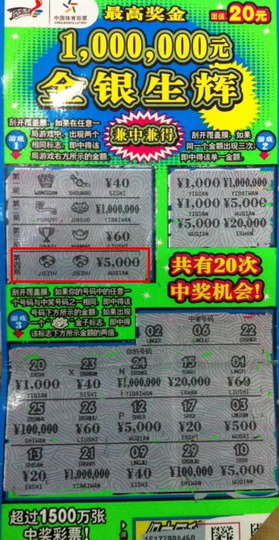 彩民小王(化名)的中奖票是一张十足的“满堂彩”:荧光绿色的彩票上,每个游戏都中奖。“刮开游戏一的第一局我就很开心地告诉身边的朋友,中了1000了,接着三局都中得1000元,听着我说,朋友们都不相信,纷纷围过来,一起帮我数到底中了多少钱。”他表示,刚刮开第一个1000元的时候是很兴奋,但是刮开4个1000元的时候他就盼着自己可以中得大奖。“5000元虽然不多,但是我已经很满意了。关键是还有4888元的健身经费,我这奖中得也很精彩呀!”
