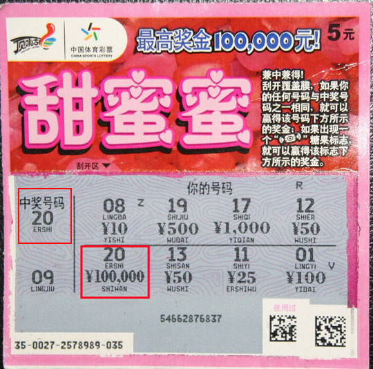 陪同小丁一同前来的父母表示,小丁平时就很喜欢买彩票,不管是小区附近的彩票网点,还是单位附近的彩票网点,小丁都是熟客,买彩票已经成为小丁生活娱乐的一部分。小丁年纪不大,但一直很关注即开彩票的动向,各种系列的即开票,小丁均有涉猎,“甜蜜蜜”就是一款深受小丁喜爱的经典票。小丁说,“甜蜜蜜”不仅听着喜庆,颜色也鲜艳,最重要的是他第一次刮彩票中的 10 元,刮的就是“甜蜜蜜”!而当这次刮开“甜蜜蜜”所看到的 10 万元大奖,让小丁前所未有的惊喜!“甜蜜蜜”简直是他的幸运彩。