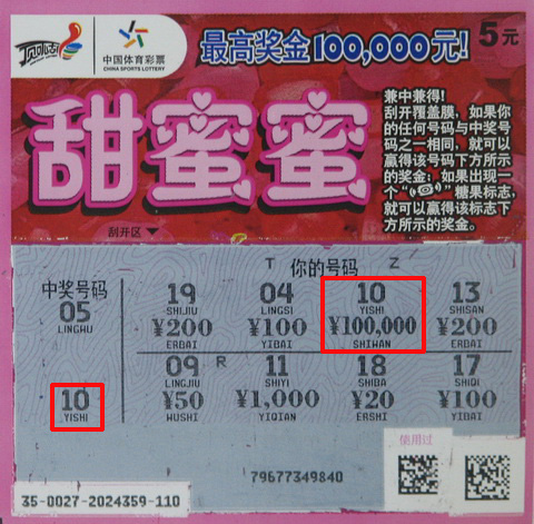 冯先生(化名)是新闸竞彩店的常客,整洁舒适的环境,热心周到的服务让他常不自觉的就走到店里来了。冯先生表示,在这里,能跟志同道合的彩民朋友交流,又有趣味无穷的体育彩票,每次走到门口就迈不动步子了,总要进来坐坐,刮上几张彩票。当天,冯先生共挑了200元即开票,种类很杂,边刮票边跟销售员聊天,拿起“甜蜜蜜”的时候,他很是喜欢,“这个‘甜蜜蜜’设计的真不错,让人忍不住就联想起邓丽君优美的歌声了。”说完还自顾自哼上了小曲。突然哼着《甜蜜蜜》的调子就没了,销售员一抬头,冯先生有点发愣的举着票左看右看,口中念念有词,“我好像中奖了,好像还是个十万……”几个客服人员凑过去一看,中奖号码“10”在刮开区出现了,对应奖金十万,可不是又出大奖了!