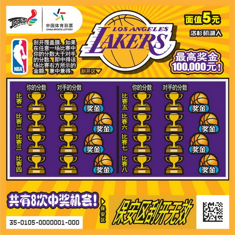 游戏区的票面图案,主要由金灿灿的奖杯和篮球构成,似乎寓意着转动“篮球”,弹指间,你将有机会捧回属于自己的“总冠军奖杯”。该票共设置了8场比赛,游戏方法也十分简单。刮开覆盖膜,如果在任意一场比赛中你的分数大于对手的分数,即中得该场比赛右方所示的金额,兼中兼得。单张彩票共有8次中奖机会,最高奖金10万元。
