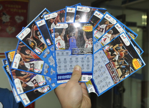 前几天,5元面值的NBA主题票登陆苏州,再次激发了NBA球迷们对这款主题彩票的热爱。从苏州各地得到的消息,NBA主题票已成为了近期“顶呱刮”销售的主力票种,赢得NBA特许产品运动礼包的彩民数量也与日俱增。截至目前,苏州已经有680多位幸运彩民在中得奖金的同时赢取了大礼包。