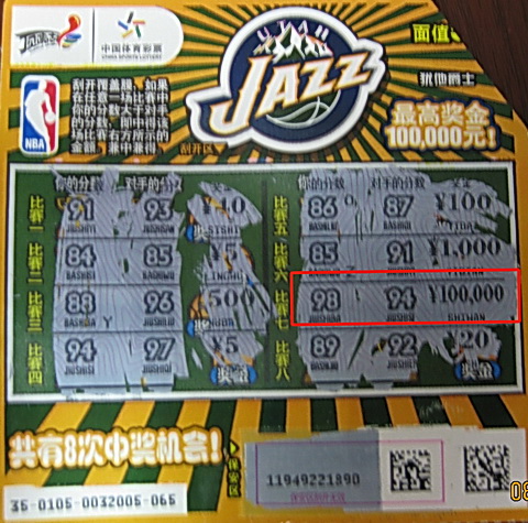 经中奖人小州介绍,他本来是到汽修厂修车子的,刚好看到修理厂旁边的07091体彩店,透过玻璃橱窗他看到NBA主题中奖展示票,觉得有点意思,一时兴起就花了10元钱买了两张。“没想着中10万,只要中就行了,多少无所谓,就图个好心情。”小州说。一个良好的心态总能带来意想不到的收获,小州的无心插柳换来了“NBA主题票”10万元大奖。