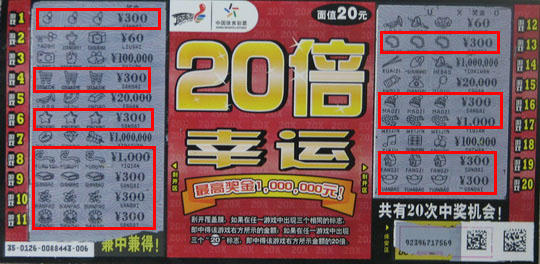 20倍幸运”作为“幸运家族”的新成员。上市之初就刮起中奖旋风,可以说是幸运大升级,从“五倍幸运”到“十倍幸运”,再到“20倍幸运”。从10万到25万,再到100万,“顶呱刮”从未停下送出幸运的步伐。“幸运家族”作为“顶呱刮”中的出奖大户,可谓战功显赫。截至目前,“五倍幸运”已经送出3510万元大奖,“十倍幸运”则爆出了4825万元大奖。这样的成绩,令人咋舌。而新近上市的“20倍幸运”,又将演绎怎样的大奖传奇,为彩民奉上多少个百万大奖?让我们一同拭目以待!(常州:小钱)
