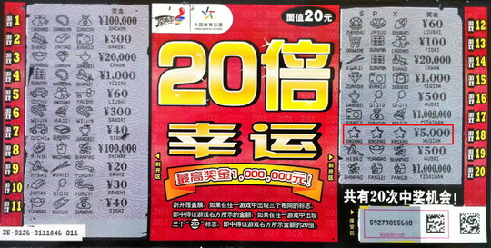 一直以来,体彩即开型彩票“顶呱刮”受到了彩民们的热捧,尤其是为南京创造6个百万富翁的“百万家族”,更是一上市就会掀起刮奖热潮。近期,该家族又添新丁,体彩首款横版20元票种“20倍幸运”一上市就给南京彩民带来了丰厚奖金。