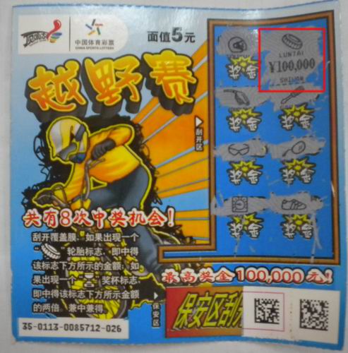 即开彩票“越野赛”上市后,虽得到了无锡彩民的喜爱,大奖却迟迟不肯现身,在“玩体彩即开,中5000送笔记本电脑”活动推出当日,“越野赛”才终于按奈不住,迸发出10万大奖。中奖彩民是一位喜欢运动的女士,平常也非常喜欢顶呱刮运动主题的彩票,经常买来刮,有了这么给力的活动,自然比平时更心动。幸运的是,这次她刮了四张就中得了10万元大奖,额外的笔记本电脑也让她开心地满面红光。
