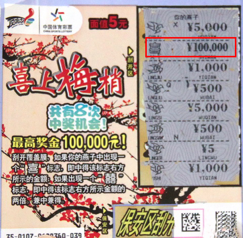 刚送走“喜上眉梢”大奖得主,兑奖大厅又迎来个“甜蜜蜜”的幸运儿。中奖者是一个年轻小伙,09年开始买即开彩票,这次虽不是他第一次中奖,却是他中奖最大的一次,经典票种“甜蜜蜜”为其送去10万大奖,更为其赢得一台笔记本电脑。