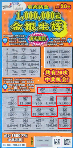 许先生(化名)是在常州武进区湖塘定安路9号的54728竞彩店中得“金银生辉”5000元大奖的。许先生兑奖时很得意,“自从‘金银生辉’上市以来我就没买过其他即开票,平常在竞彩店等球赛的时候无聊,经常会买这种票来刮,我身边的几个朋友也受我影响喜欢上了这种票,我们几个经常包个整本来刮,好玩又刺激。”据许先生介绍,由于经常刮“金银生辉”,他已经摸索到了一点门道,一本票里面如果有一张票符合他认定的“规律”,那里面肯定会出500元以上的大奖。这次中奖也是因为他看到前一个彩民刮出了符合“规律”的彩票,才把那本剩下的票全部买进,果不其然,真让他刮中了5000元,附赠的笔记本电脑更是让他喜上眉梢!