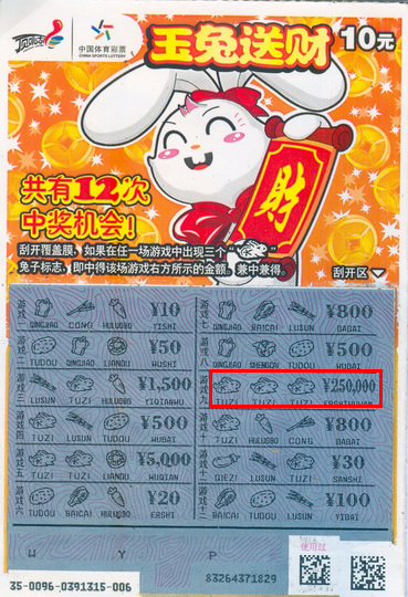 近日,南通彩民喜事连连,刚在中秋佳节收获“二十倍幸运”10万大奖,9月13日晚,市区彩民张先生(化名)又刮中顶呱刮生肖票种“玉兔送财”25万大奖,并且同样幸运的赢得一台笔记本电脑。