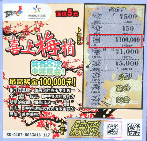 前不久,无锡彩民老王喜中顶呱刮“喜上梅梢”10万大奖,