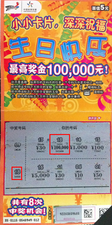 “这个彩票不仅可以折叠,还有个专门的地方写祝福的话,形式很新颖。”张先生说他一看见“生日快乐”就觉得票如其名,可以作为很独特的生日礼物。虽然中奖那天不是他的生日,但是他还是很快乐。他还提出了自己的想法,希望还会有和新年、中秋等等传统佳节有关的节日祝福即开彩票上市。“充满祝福的即开彩票也一定会满载着大奖来到我们彩民之中!”