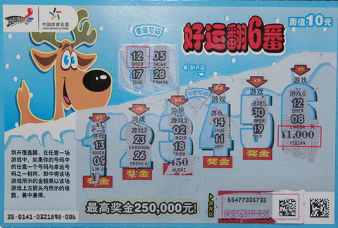 “好运翻6番,一千变六千”,小李(化名)一边说着一边掏出一张彩票递给工作人员,是顶呱刮“好运翻6番”的中奖彩票。正如小李口中所说,这张彩票中出奖金6000元。