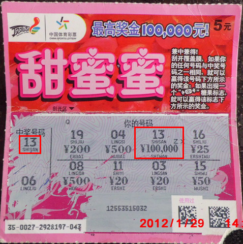 小雨告诉记者,大年初一下午,他和表弟在兴化市商业中心逛街时,看到有体育彩票销售,其中12558站点前最为热闹,簇拥的人群中不时发出欢呼声,好奇的兄弟俩立即就被吸引了过去。“听到有人中了几百块,我们也想玩玩,兜里有十块零钱,就挑了最实惠的5元的‘甜蜜蜜’每人一张。”小雨说,当他刮开第三个数字,看到了与中奖符号码相同的“13”时,心中一阵窃喜,紧接着数字底下显示的“100000”可是让小雨狂喜不已了。大奖如同炸弹似的在大年初一的街头爆发了,可是兄弟俩却不敢声张,一刻都没逗留赶紧跑回了家。“毕竟这么多钱呢,要是被坏人盯上了咋办?”小雨笑道,“我还要把奖金悄悄地存起来,今后总能派上用场。”