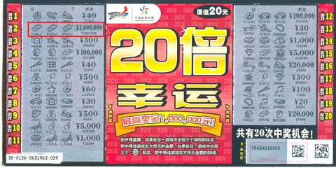 2月26日,位于南通海安县新宁南路商业一条街的06484体彩站点传来喜讯,该站点中出了顶呱刮“20倍幸运”100万大奖!