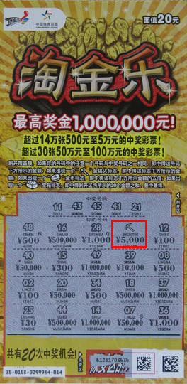 小李在常州武进奔牛金牛西路19号的04128站点感受了一把中大奖的快感。当天小李跟往常一样晃悠到站点上去刮刮即开票,他平常就专情于20元即开票,那天销售员看他来了就赶紧给他推荐新票“淘金乐”。小李看着新票金光闪闪十分讨喜,于是一口气要了十张,结果一不小心就刮了个5万元大奖出来。小李兑奖时笑呵呵的表示,当时一激动脑子也不灵光了,看来看去自己还是不确定,最后还是请销售员确认了中奖金额。