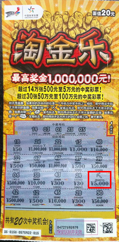 “听说南京“淘金乐”第一个5000元奖金就是刮出的‘金镐头’产生的,所以我玩‘淘金乐’就有个习惯,先刮中奖号码,希望不管是镐头、金币还是宝箱,只要可以直接刮出中奖符号直击大奖就行。果然,这次就是‘金镐头’给我带来好运,送来5000元奖金。”刘先生说,这奖金他打算作为购彩基金,趁胜追击,希望拿着这“金镐头”淘出更大的奖。