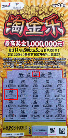 彩民小张随口报出自己的幸运号码“3”,点名拿下了票号后三位为“003”的“淘金乐”。就是这张彩票,让本想试试手气尝个鲜的小张当场刮中5000元。拆封的第一本就中得5000元,在场的彩民淘金热情立即高涨起来。冯小姐说:“那天刚到的几本新票立即被抢购一空,彩民们不仅刮得热火朝天,中奖也是一个接着一个,除了这个5000元的,还有不少百元奖金,大家都还是有不少收获的。”