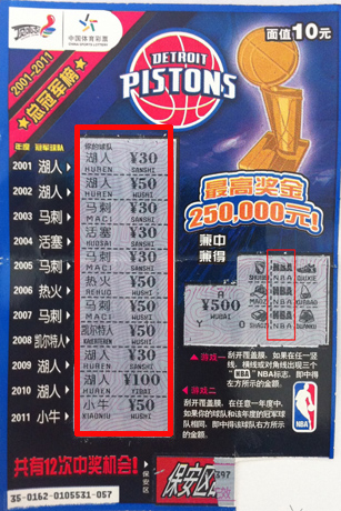 果然,王先生和销售员刚走不久,一位老太太就走进了兑奖大厅,她手上拿着的,正是在 51039 中得 1000 元的“ NBA 总冠军票”。