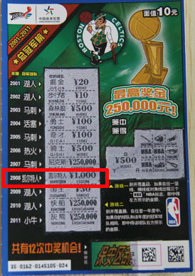在小赵领走 ipad 后,孙先生成为第二位幸运儿,拿走 1000 元奖金,领走 1 台 ipad2 。与小赵不同的是,孙先生并不是一个铁杆彩友。孙先生周末陪家人游玩时,看到一家体彩站点门口的“ NBA 总冠军”票海报,觉得很吸引人,于是就买了 3 张。他刮第一张刮出了 30 元,刮到第三张时在游戏一玩法中刮出了 500 元奖金,游戏二中也刮出了 500 元奖金。孙先生当时让销售员确认,销售员高兴地说:“您中奖了,这可不只是 1000 元,还能额外得到一台 ipad2 呢。”