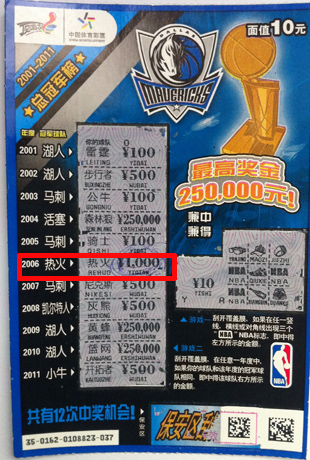 体彩顶呱刮的 NBA 主题系列彩票去年上市就给彩民朋友们带来超值的 NBA 特许产品大礼包。 4 月 9 日,以 2001-2011 年间获得 NBA 总冠军队伍为主题的“ NBA 总冠军票”重磅登陆,还带来了时尚好礼 iPad 。南京城顿时掀起刮奖热潮,喜讯也接连不断,截至当天下午三点,已有 7 位彩民捧回 iPad ,有的时候领奖竟然需要排队。