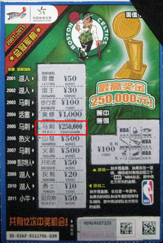 据了解,小李平时就特别喜欢看NBA比赛,同时也是一位竞彩和“顶呱刮”的爱好者。这天晚上下班顺路来到07147站点,小李一眼就看到了“NBA总冠军票”的活动海报。由于本次发行的“NBA总冠军票”是以近11届NBA总决赛冠军为主题的套票,并将NBA篮球元素融入其中,极具收藏价值。身为NBA球迷的小李打算收藏一套,光收藏还不够既然有iPad相送,他决定再实战一把,试试自己的运气。于是,他花30元买了3张,在刮到第三张的时候“250,000”的数字赫然出现在他的眼前,小李激动地跳了起来。