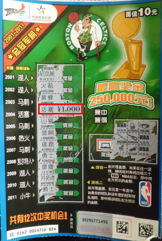 在泰兴做不锈钢生意的姜堰人张先生,是顶呱刮的忠实拥护者,几乎每晚都去泡站点,除了大战“11选5”,就是玩顶呱刮。当“NBA总冠军票”新鲜上架后,张先生果断出手,还拉着朋友一起淘宝,“没想到这种票这么好中,10号晚我刚中了750元,11号晚上再刮,第三张就中出了1000元。”张先生兴奋地对记者说道,当晚12441站点仅剩最后一本“NBA总冠军票”,在被别的彩民刮掉6张票后,眼尖的张先生索性包圆,最终他命中了篮筐,收获了千余元奖金和iPad。
