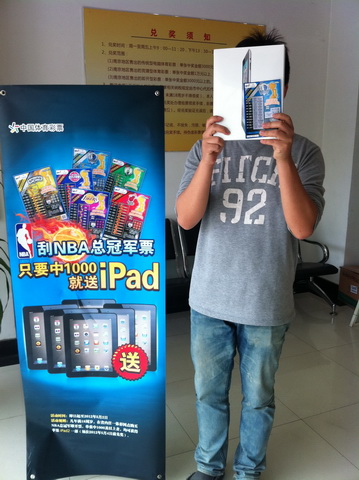 “本来买了一套6张回家,准备收藏起来的,可是一直挂念着中1000就能获赠iPad的活动,就没忍住,把手中的票刮掉了。”在印有2011年新科冠军小牛队队徽的彩票上,他刮出了1000元奖金。