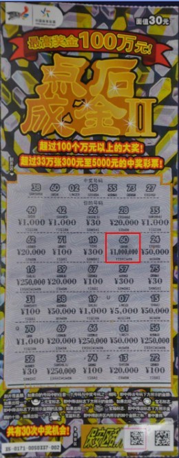 即开体彩顶呱刮全新百万票种“点石成金Ⅱ”在我省上市不过数天,便有中奖喜讯传来,7月16日,苏州张家港的一位幸运彩民在05725站点刮出了该票的江苏首个百万大奖。