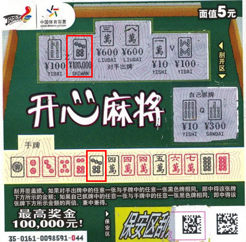 9月18日下午,苏州市体彩中心走进了一对父子,经核验,他们中得了体彩顶呱刮“开心麻将”头奖十万元。