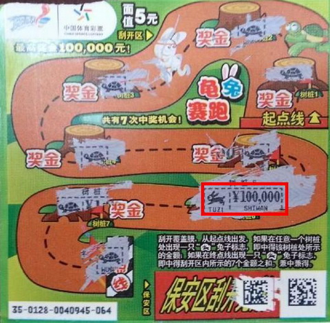 体彩即开型彩票凭借着即买、即开、即兑、玩法简单、趣味性强等优势而深受广大彩民的喜爱。2013年1月10日上午,张先生(化名)跟一位朋友来到了太仓市体育彩票管理中心兑奖大厅,他的“龟兔赛跑”帮他赢得10万元。