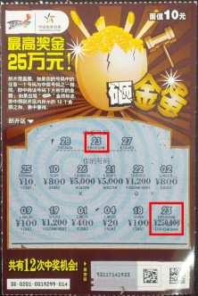 就在农历新年即将到来的时候,体彩即开彩票“砸金蛋”伴随着喜庆的气氛来到江苏彩市,并且以其很高的中奖率给彩民们带来欢声笑语和丰厚奖金。来自扬州的女彩民周小姐(化名)就在节前来到南京市体彩中心,领走了又一个头奖25万元。