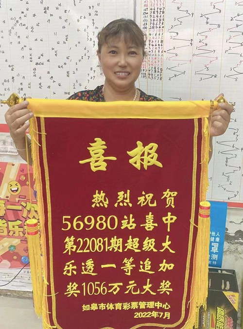7月18日晚,体彩超级大乐透第22081期前区开出号码“05、10、19、31、32”,后区开出号码“09、10”,位于南通市如皋3206056980网点一位幸运购彩者喜中追加一等奖1注,收获奖金1056万元。