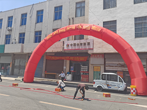 6月8日一早,宝应县文体广电和旅游局和宝应体彩中心工作人员就来到了网点帮助网点业挂横幅、立拱门、贴喜报,摆鞭炮忙得不亦乐乎。“噼里啪啦、噼里啪啦……砰啪!”业主昌伟买了3万响鞭炮和十几个爆竹,震耳欲聋的爆竹声引来了不少镇民围观。
