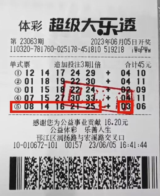 6月13日,3210010672网点业主陪同秦先生和赵先生来到扬州市体彩中心领取了自己的幸运。秦先生的票是一张6元3注单式票,赵先生的票是一张45元3期追加单式票,虽然投注方式有所不同,但是两者都是守号。
