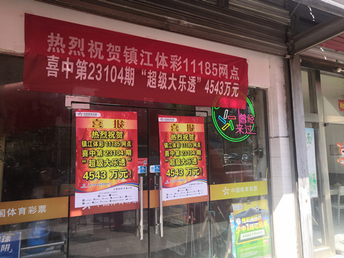 9月9日晚,体彩大乐透第23104期开出的中奖号码为:06、15、16、32、33+08、10。在位于镇江市区学府华庭36幢114号的体彩3211011185网点中出一等奖(含追加)4注,奖金共计4543万元!