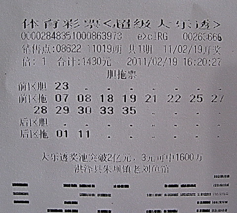 第二天,朱先生通过江苏体彩网知道了中奖号码“08 21 23 27 33 +06 11”,算算自己中了5万多元,朱先生非常开心,他开玩笑说:“这样本钱增厚了,我要倍投掏空大乐透2亿奖池!”(虎 啸)