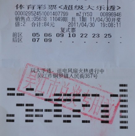 在4月30日开奖的第11049期超级大乐透中,吴江一位彩民以一张84元的复式票倍投击中大乐透19万多元二等奖,仅差一个后区号码,与百万头奖擦肩而过。