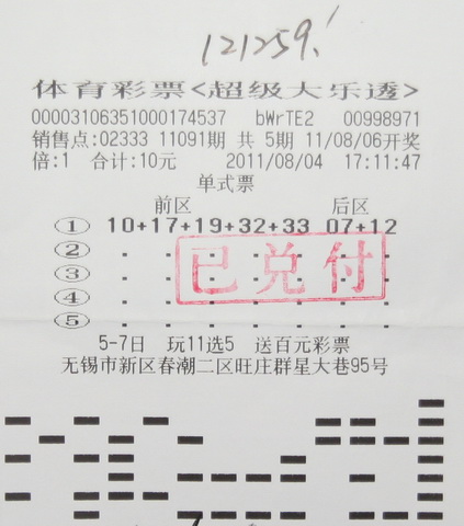 8月6日晚,无锡彩民以1注大乐透千万巨奖夺得八月头彩,而另一位彩民虽然在此期中没有中奖,但他投注的多期彩票在8月8日晚的11092期迎来幸运,喜中二等奖12万余元。