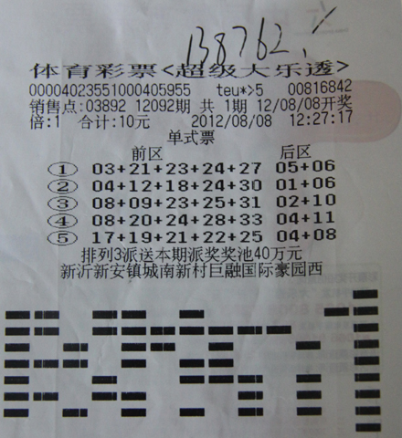 12092期超级大乐透开奖号码为:8、9、23、25、31+2、12,徐州新沂03892站点彩友喜中二等奖1注,获得奖金138762元。据悉,中奖彩友张先生购买体彩已有5年之久,平日最常购买的就是超级大乐透、7位数,在几年前,张先生曾利用自己、老婆和小孩的生日号,大胆倍投,结果相当幸运地击中了大乐透三等奖,拿下总奖金12万元。他说,平日里,几十几百的小奖也经常中。
